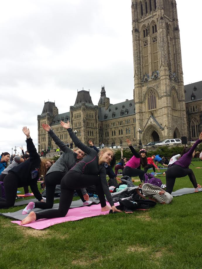 La classe d'éducation physique 10e année de madame Lemire a trouvé une percée de soleil dans cette semaine pluvieuse. Le soleil est sorti juste assez longtemps pour qu'elles puissent faire du yoga à l'extérieur sur la colline parlementaire. Les filles ont adoré l'ambiance relaxante du yoga en plein air.